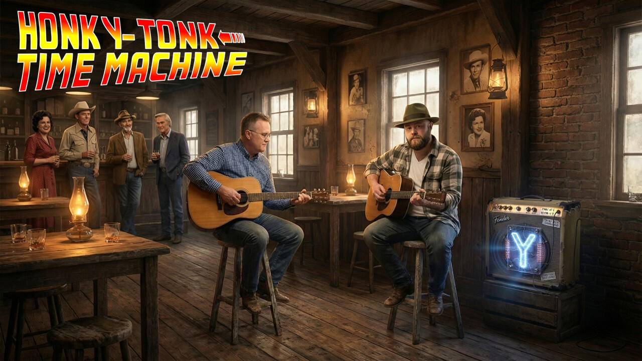 Step aboard the Honky-Tonk Time Machine and join country duo Blake Wagner and Dave Manley as they traverse through time with their classic country tunes; featuring songs from the 1970s, 1980s, and 1990s. Fueled by a shared passion for the legends of old, their harmonies and timeless melodies whisk listeners to bygone years, effortlessly transporting them through time and space. Close your eyes and let the honky-tonk anthems of the '70s conjure up images of neon-lit dancehalls while the heartfelt ballads of the '80s take you on an emotional journey down memory lane. Then, the boot stompin' hits of the '90s propel you to a rollicking country party under the starry night sky and yellow moon.