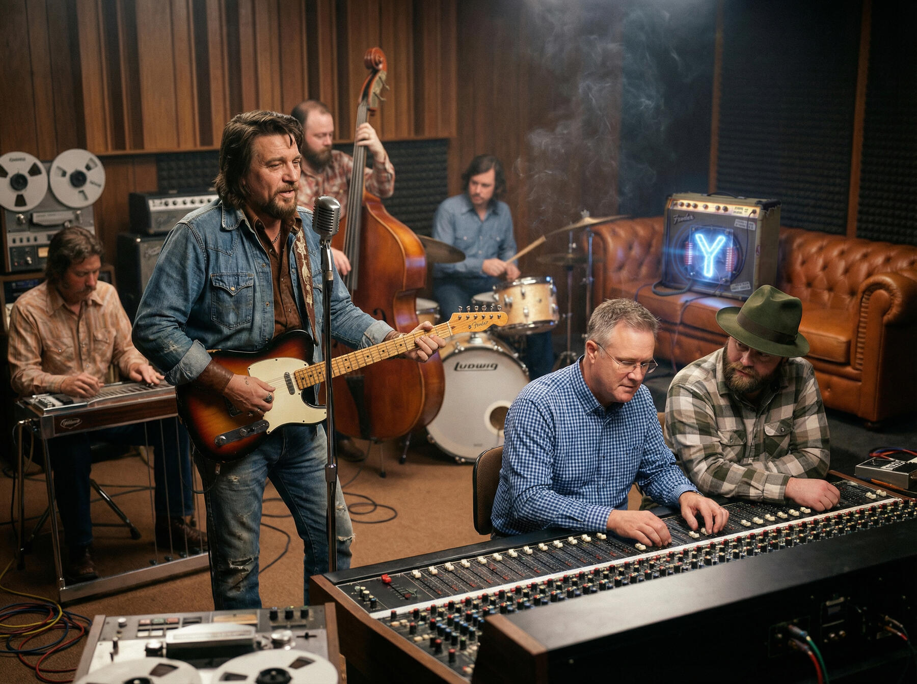 Featuring Waylon JenningsBlake reached down and adjusted the dials, the tubes beginning to glow as the current built. “Nashville. Nineteen seventy-two,” he said, glancing at Dave. Dave tightened his grip on the neck of his guitar as the low hum deepened into a steady vibration that ran up their arms and into their chests. The room around them flickered like an old film reel burning at the edges. The air smelled suddenly of hot dust and ozone, then shifted to something thicker—cigarette smoke and summer humidity. The floor beneath their boots felt solid one second and weightless the next, as if the years themselves were sliding past in reverse. When the vibration settled and the light steadied, the sound of a pedal steel drifted faintly through the air. They were standing on Music Row, 1972, just in time to witness Waylon Jennings walk into a Nashville studio and decide what his sound was going to be.The afternoon heat hung over Music Row as Blake and Dave stepped into RCA Studio B, drawn by the sound of a playback echoing down the hallway. Inside the control room stood Waylon Jennings, listening intently as the final notes of a take drifted through the speakers. The track was polished—strings swelling gently behind his voice, background vocals tucked neatly into the chorus. It was smooth, professional, and carefully constructed.Waylon removed his headphones slowly and set them on the console. He kept his eyes on the studio floor beyond the glass, where the musicians waited. After a long moment, he spoke evenly. He said it wasn’t his band.One of the producers leaned back in his chair and calmly explained the arrangement. These were Nashville’s top session players. The added strings would broaden the song’s appeal. This was how hits were built. The system worked. It was the Nashville Sound!Blake and Dave stood along the back wall, watching the exchange. They could see that this was not simply about instrumentation; it was about identity. Waylon wasn’t arguing about notes. He was deciding whether to accept a version of himself that felt safer than the one he heard in his head.