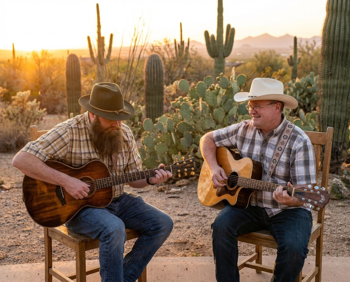 Warmer.The flux capacitor pulsed—steady now, not frantic. The air in the garage thickened, like it was paying attention.Dave felt it first. “You feel that?”Blake nodded but didn’t stop playing.They hit the progression again. This time with nothing held back.That’s when the garage shifted.Not violently. Not dramatically.Inevitably.The walls didn’t explode—they loosened. The air bent. Sound folded inward and became direction. Time didn’t shatter—it opened.They weren’t thrown forward or backward through years. They were placed—inside the living current of country music itself. Roads. Stages. Buses. Cabins. Back rooms where songs were written quietly and never recorded.Dave let out a short laugh, half disbelief, half victory.“It was never about how loud we played.”Blake nodded.“It was about telling the truth out loud.”They named it that night.The Honky-Tonk Time Machine.Built from an old Fender Deluxe Reverb.