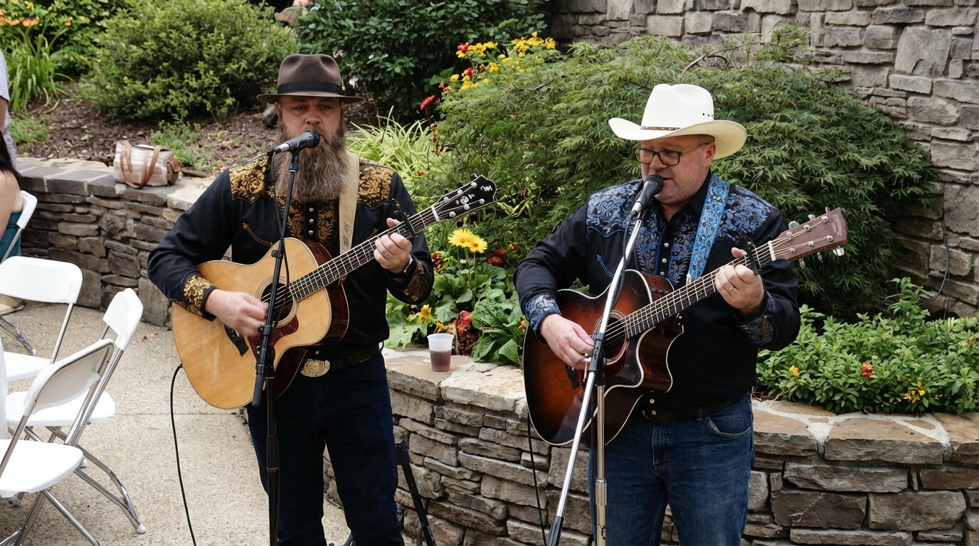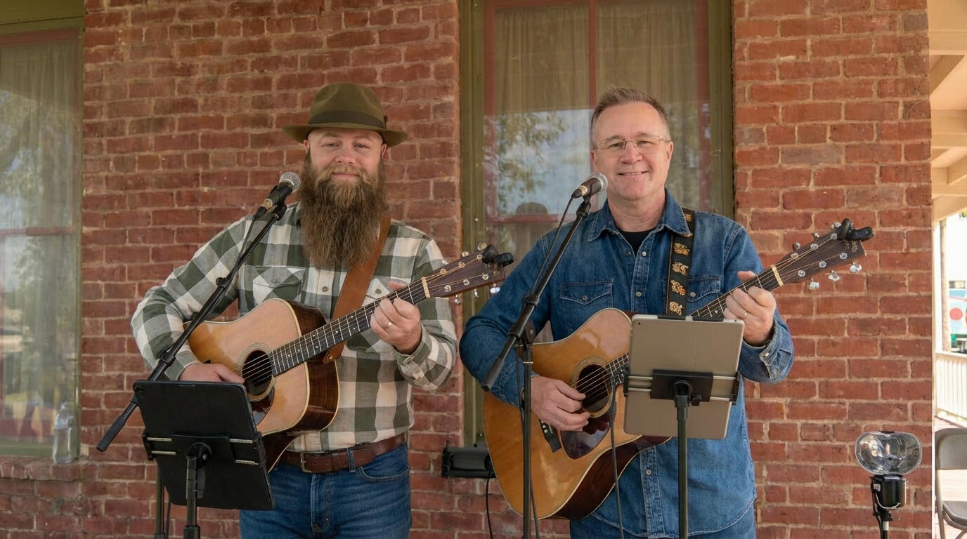 Step aboard the Honky-Tonk Time Machine and join country duo Blake Wagner and Dave Manley as they traverse through time with their classic country tunes; featuring songs from the 1970s, 1980s, and 1990s. Fueled by a shared passion for the legends of old, their harmonies and timeless melodies whisk listeners to bygone years, effortlessly transporting them through time and space. Close your eyes and let the honky-tonk anthems of the '70s conjure up images of neon-lit dancehalls while the heartfelt ballads of the '80s take you on an emotional journey down memory lane. Then, the boot stompin' hits of the '90s propel you to a rollicking country party under the starry night sky and yellow moon.